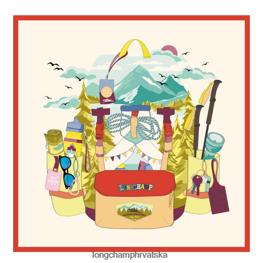Usvojite nomadski duh i krenite “glamping” s ovim svilenim šal s motivom ruksaka. Emblematična Maisonova osjetljiva umijeća, svileni šal s dugim čampom je šik dodatak bilo kojem sezonskom garderobi. Nosite elegantno oko vrata, kao dodatak za kosu ili vezani oko struka kako biste stilski naglasili svoju siluetu.