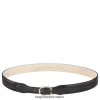 Čiste linije ovog pojasa naglašavaju jedinstvenu kopču modela: ovalni medaljon ukrašen vozačem Longchamp -a u punom galopu. Grafički i elegantni, ovaj će pojas biti svakodnevno. Pojasevi se više ne koriste jednostavno za označavanje struka ili da se malo stroga odijelo čini ženstvenijim. Oni su postali središnji dio odjeće, prihvaćajući detalje, boje i neočekivane teksturne efekte. Kao specijalist za kožne radove, Longchamp uživa u istraživanju njihovih beskonačnih mogućnosti.