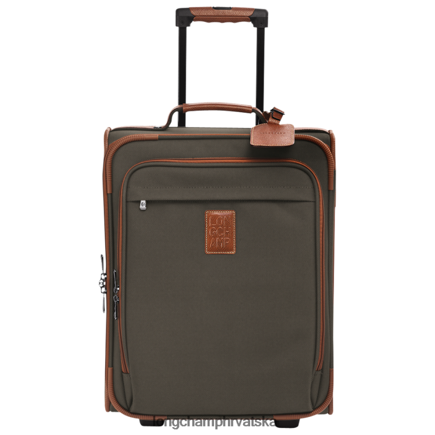 Ovaj mali kofer na kotačima je i elegantan i diskretan. Idealno za kratko putovanje, održat će sve vaše osnovne stvari. Boxford je ikonična linija marke i utjelovljuje podcjenjivanje. Njegove trezvene i karakteristične muške torbe, poslovne torbe i prtljage nose pravokutni logotip longichamp-a utisnut u kožu i kontrastni ubod za rafinirani izgled. Dvojetonski platno ukrašen je ruskom kožnom oblogom za bogat trodimenzionalni učinak.