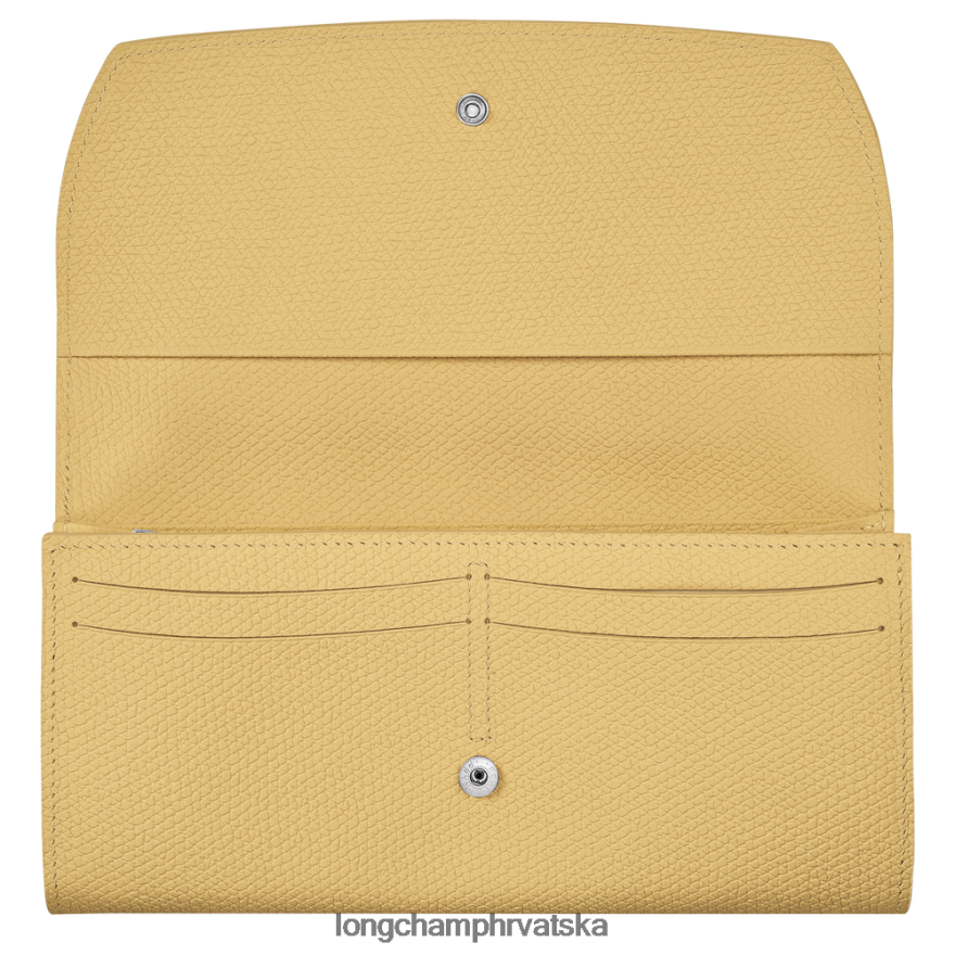 Ovaj dugački kontinentalni novčanik s 2 gusseta nudi sveobuhvatan izgled koji može držati kovanice, 14 kreditnih kartica i papira. Kombinirajući jednostavan i sofisticirani stil, Longchamphas je potpuno obnovio svoju ikoničnu liniju Roseau. Supple, podcijenjeni i ne prenaglašeni, modeli su ukrašeni ikoničnom bambusovom kopčom marke. Ova linija je super glatka, s čistim rubovima dizajniranim u kravlje kosi, kako bi se poboljšao grafički oblik modela.
